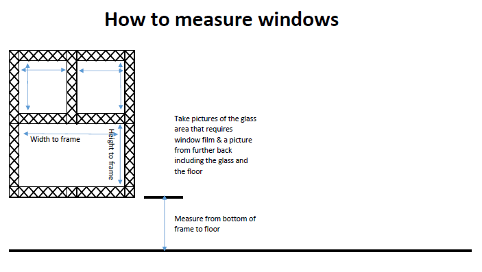 If windows are up high or on a second story, please measure from the bottom of the window frame to the floor — so we know what ladder height to bring.